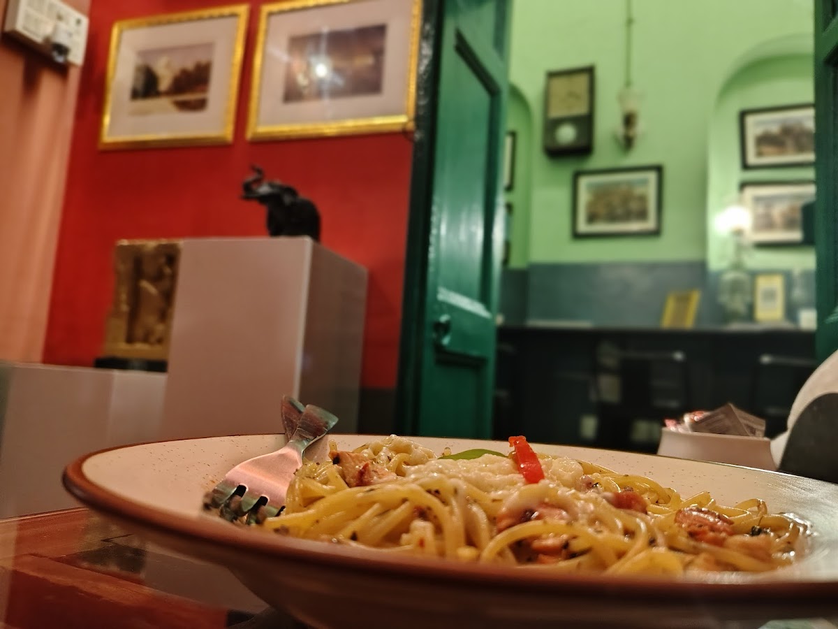 The ambiance of The Museum is undeniably enchanting. As you step inside, you're greeted by soft retro music that enhances the peaceful atmosphere, allowing for an intimate dining experience. The café is adorned with a stunning collection of historical sculptures and photographs, as well as beautiful paintings that are available for purchase. Each piece speaks of the rich cultural heritage of Kolkata and complements the vintage charm of the space, making it a feast for both the eyes and the palate.